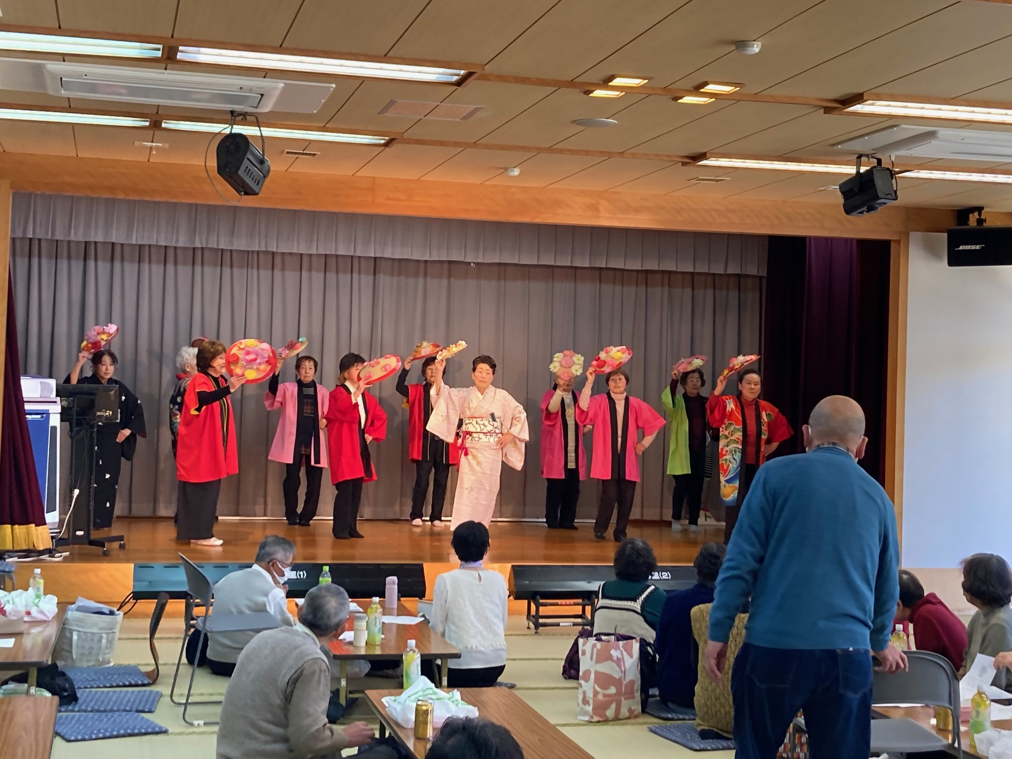 地域内の交流を目的としていこいの里で開催され、78人が参加。カラオケや舞踊、ダンスなどさまざまな演芸が披露されました。にぎやかな雰囲気の中、会場には笑顔が広がり、参加者同士の交流が深まるひとときとなりました。